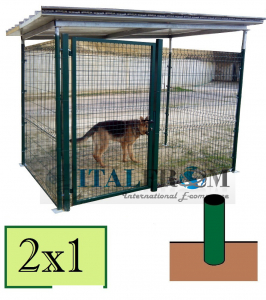 Box Recinto Modulare per Cani in Ferro Zincato Plastificato Verde-con Tetto in Lamiera e Pali ad Interrare - mt 2x1x2 h