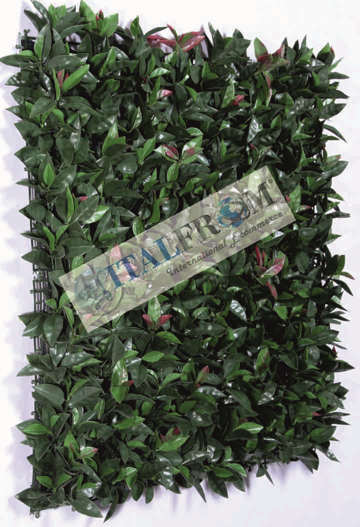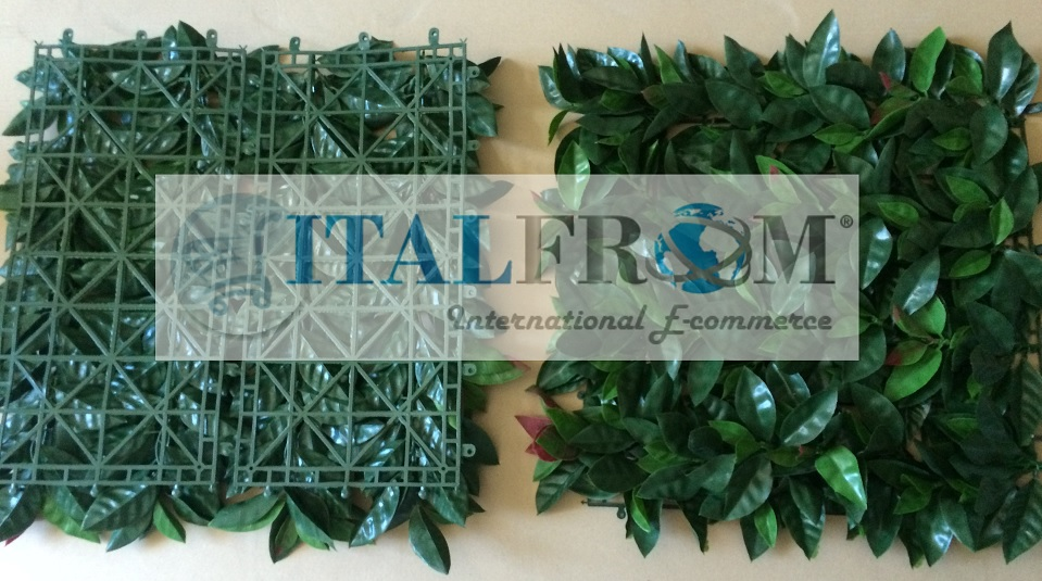 Siepe artificiale ornamentale -Retro con anima in plastica rigida - ideale per usi esterni ed interni. -Tiene lontano occhi indiscreti e non attira insetti. Utile per la privacy del vostri giardini, balconi, gazebi, ringhiere, molto utilizzata anche per addobbi di vetrine garantendo un buon riultato visivo e unifome. E' trattata per resistere ai raggi UV e conserva, il suo colore originale resistendo a qualsiasi intemperie. Non richiede manutenzione. Foglie fissate saldamente allo scheletro in plastira rigida retrostante, fissaggio sempliece e veloce con le altre piastrelle a mezzo appositi ganci. La Piastrella 50x50cm è suddivisibile in 4 piastrelle 25x25cm , in questo modo si possono coprire le misure desiderate a seconda delle necessità. * Le piastrelle a differenza delle siepi a rotoli hanno una consistenza migliore e sono visibilmente molto più realistiche .. a occhio sarà difficilissimo distinguere una nostra siepe a piastrella da una siepe vera!