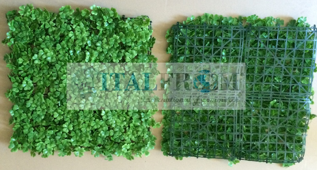 Siepe Finta Artificiale Formato Piastrella cm 50x50 con Foglie di Quadrifoglio Sintetica
