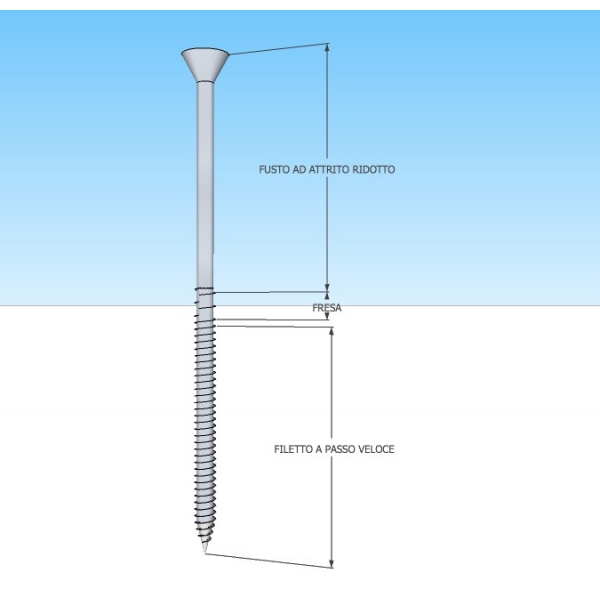 parte senza filetto che riduce l'attrito e contemporaneamente ottimizza il serraggio dei due elementi in legno l'uno sull'altro