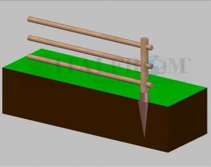 STACCIONATA CON PALI AD ANCORARE NEL TERRENO CON SUPPORTO - Staccionata composta con pali di legno di pino nordico impregnato di III classe in autoclave (elementi vericali Diamtero 12cm) (elementi orizzontali Diametro 8cm) + supporto zincato per Ancorare nel terreno.