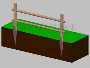 STACCIONATA CON PALI AD ANCORARE NEL TERRENO CON SUPPORTO - Staccionata composta con pali di legno di pino nordico impregnato di III classe in autoclave (elementi vericali Diamtero 12cm) (elementi orizzontali Diametro 8cm) + supporto zincato per Ancorare nel terreno.
