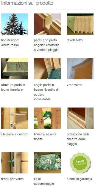 Per proteggere e prolungare la vita della casetta in legno è necessaria una corretta manutenzione. Tutte le casette in legno sono fornite grezze, è necessario proteggerle e decorarle con l’uso di prodotti specifici, come impregnanti e antitarlo.