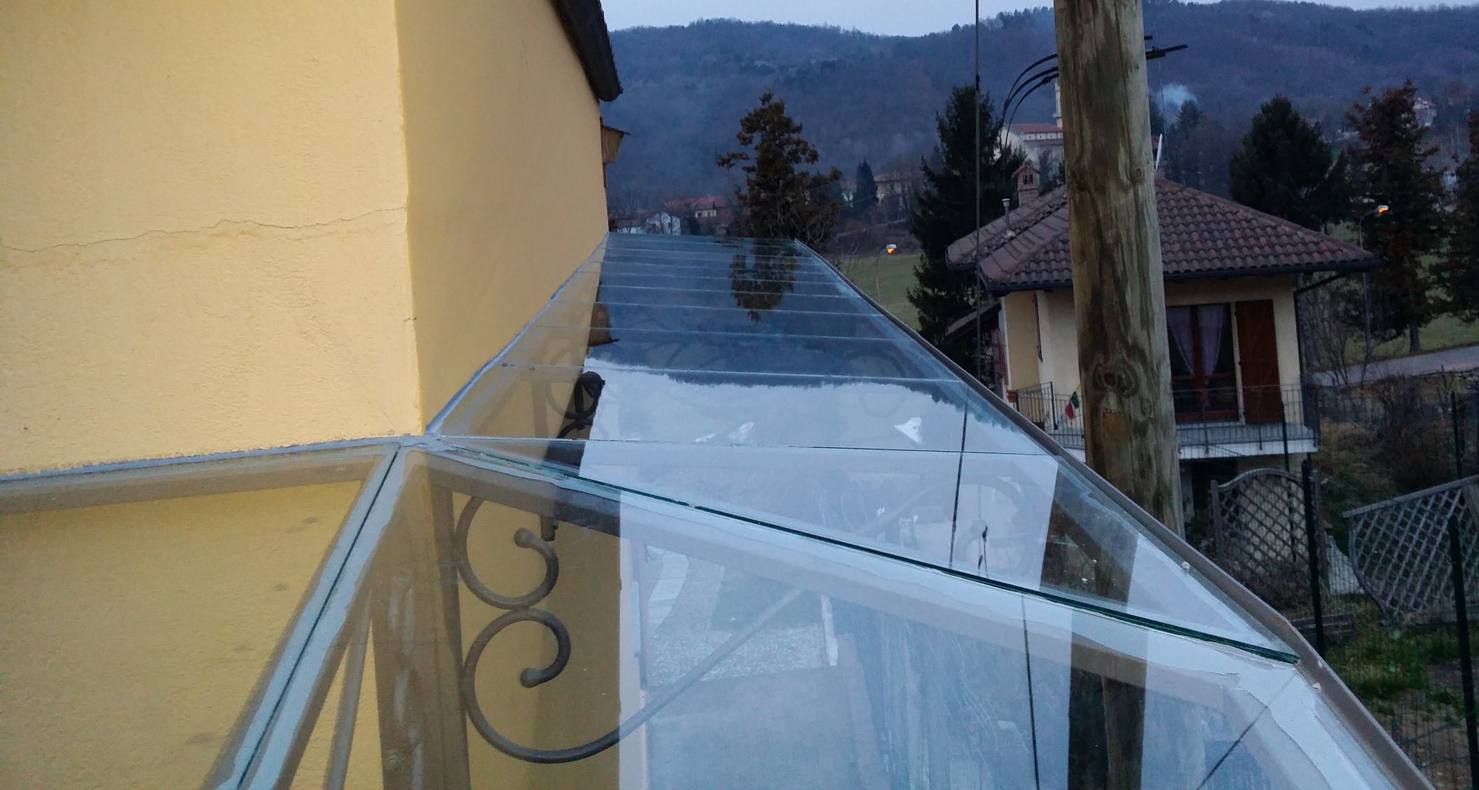 Pensilina in ferro battuto zincato e verniciata- completa di vetro antisfondamento 6/7 Trasparente.