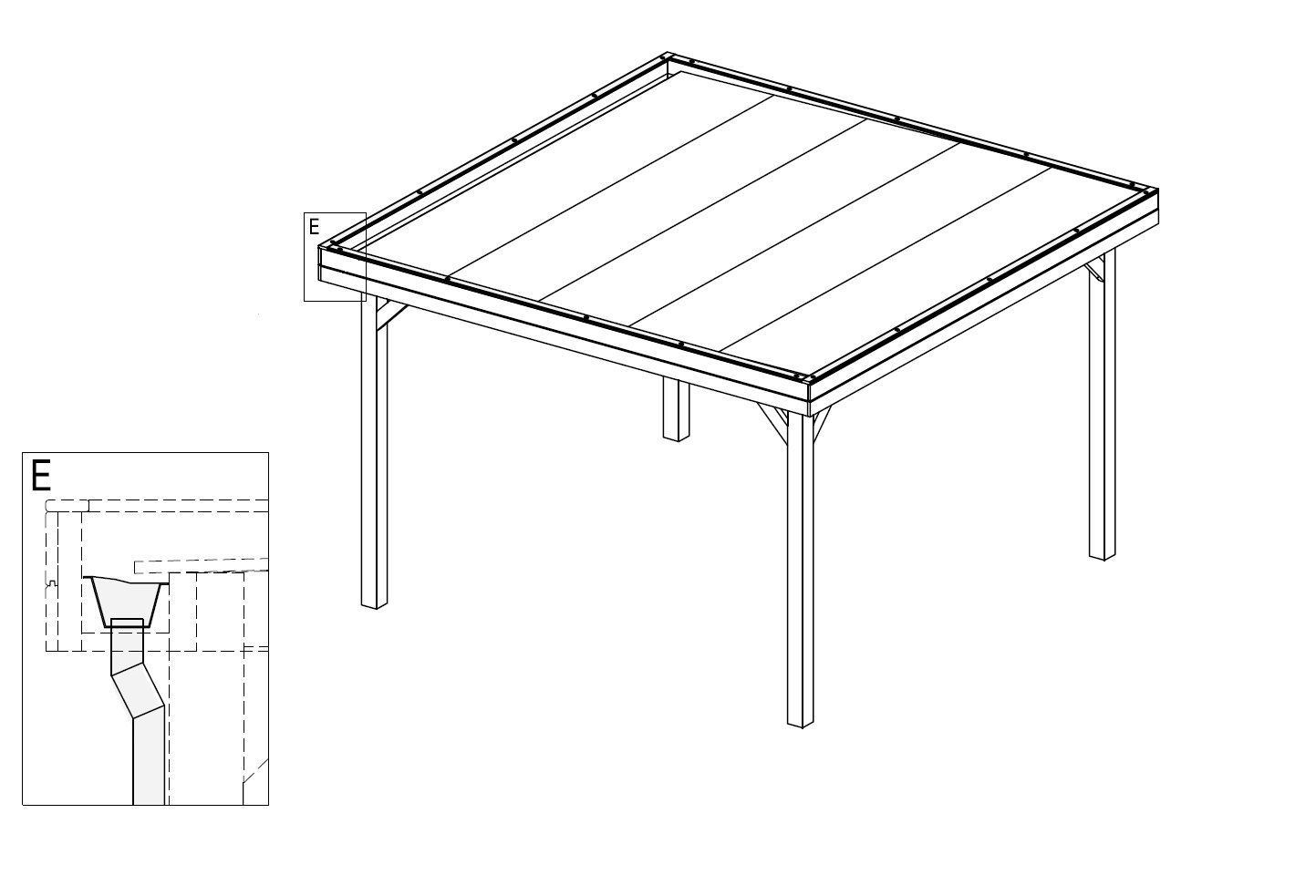 • Diversi padiglioni hanno le pareti e gli elementi del tetto pre-installati, che facilita e accelera significativamente l'installazione della casetta.