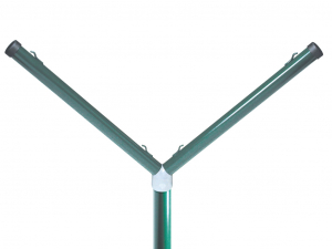 Palo curvo diam:48mm - h 230 + raccordo bavolet doppia curvatura diam: 38mm - h 60cm - sia il palo che la curvatura sono completi di passafili per passaggio fili di tensione e tappo superiore pvc - Paletto