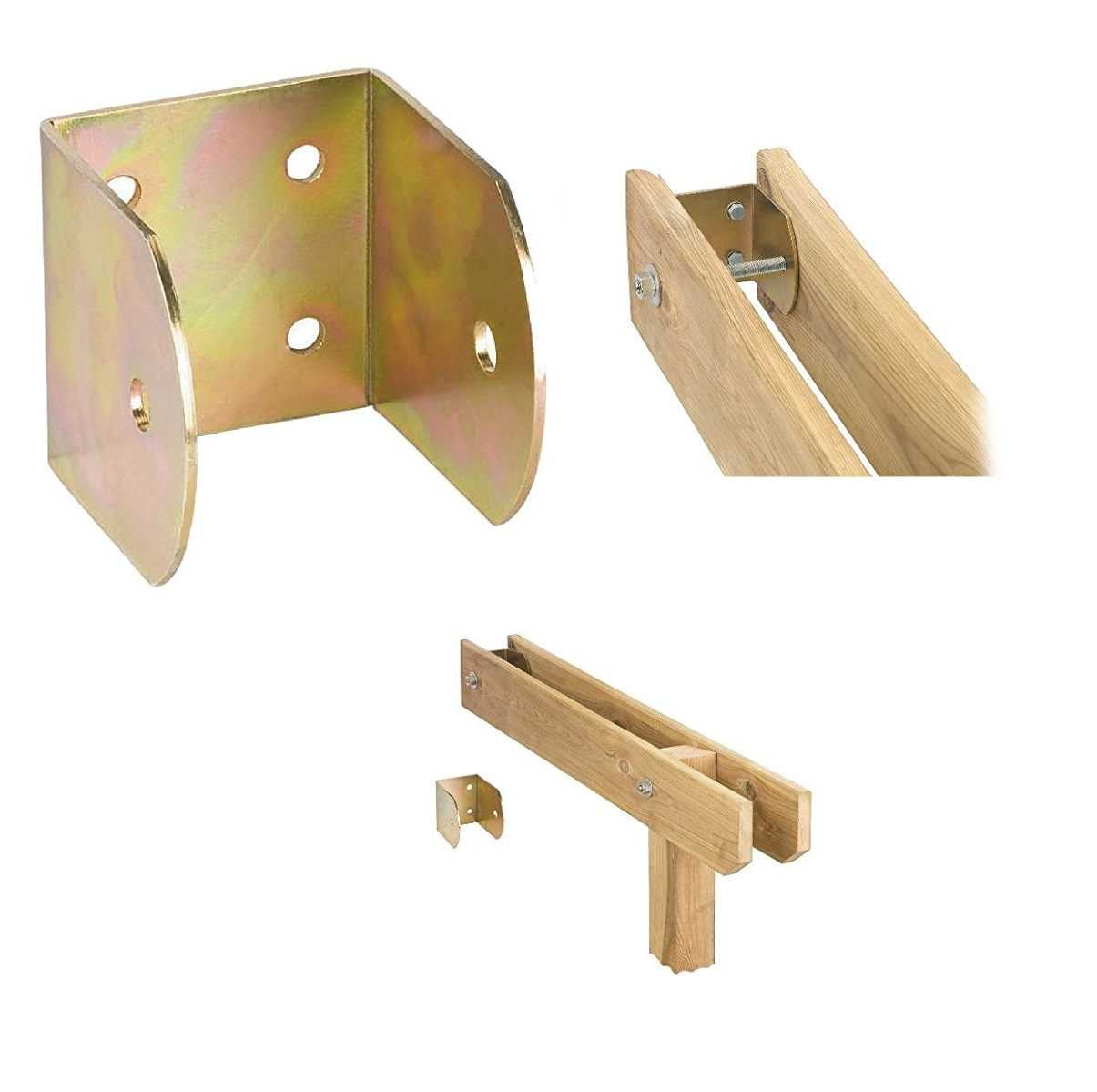 Staffa per ancoraggio al muro di doppia trave inclinata in acciaio tropicalizzato. Ideale per pergole/gazebi addossate al muro, per uso interno alle travi. DIMENSIONI 90 mm