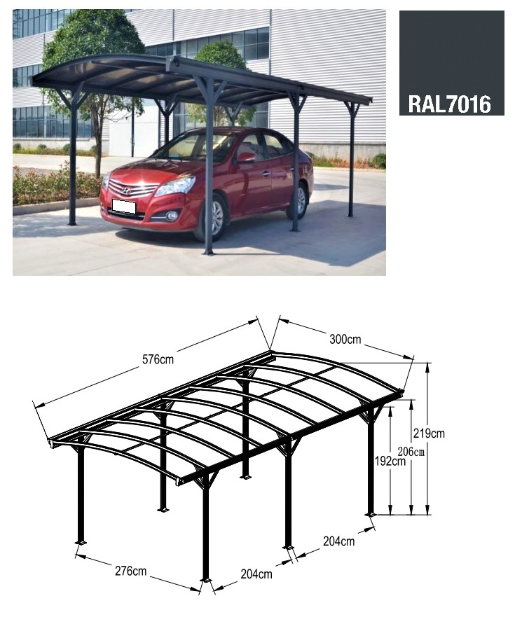 CARPORT / TETTOIA PER AUTOMOBILE IN ALLUMINIO GRIGIO Ral 7016 - cm 576X300cm -