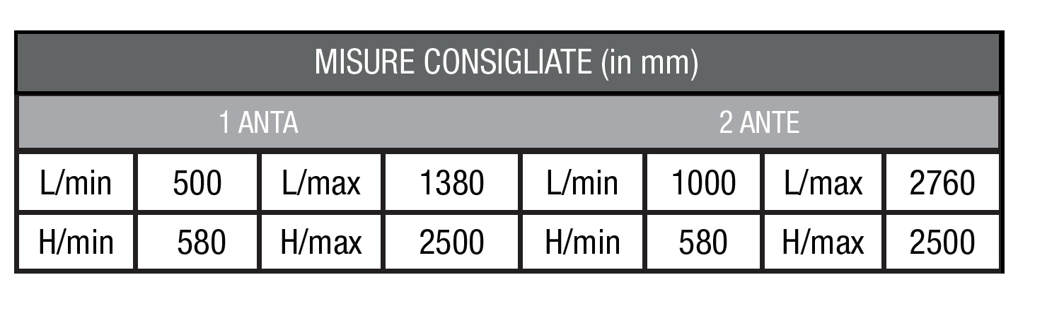 Apertura: Laterale (Singola), Centrale (Apertura Doppia)