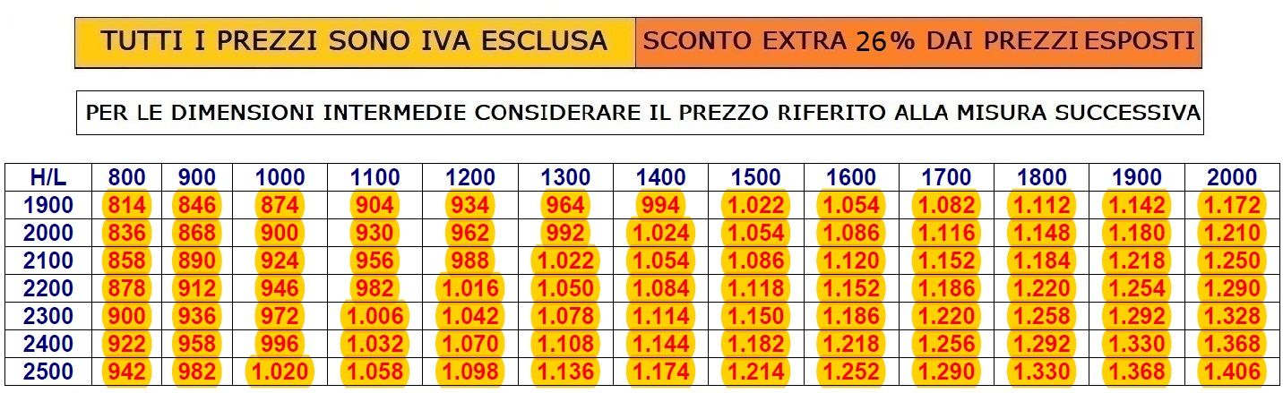 PER ULTERIORI MISURE CONSULTARE LA TABELLA SOTTO - COMPRESO TRASPORTO IN ITALIA- Per preventivi tecnici personalizzati siamo a tua disposizione, mail reparto: commerciale4@italfrom.com , Cellulare e/o Whatsapp (+39) 347.76.92.848 - Se richiesto SERVIZIO MONTAGGIO IN TUTTA ITALIA