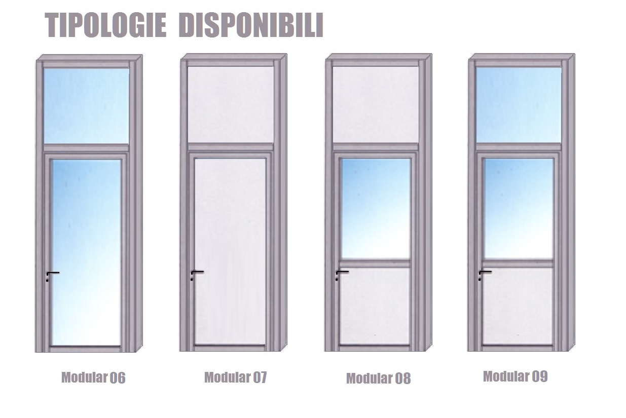 Modulo Parete Divisoria in Alluminio Vetro Luce Opale e Bachelite con Porta - H2550xL1000 mm - ITALFROM®