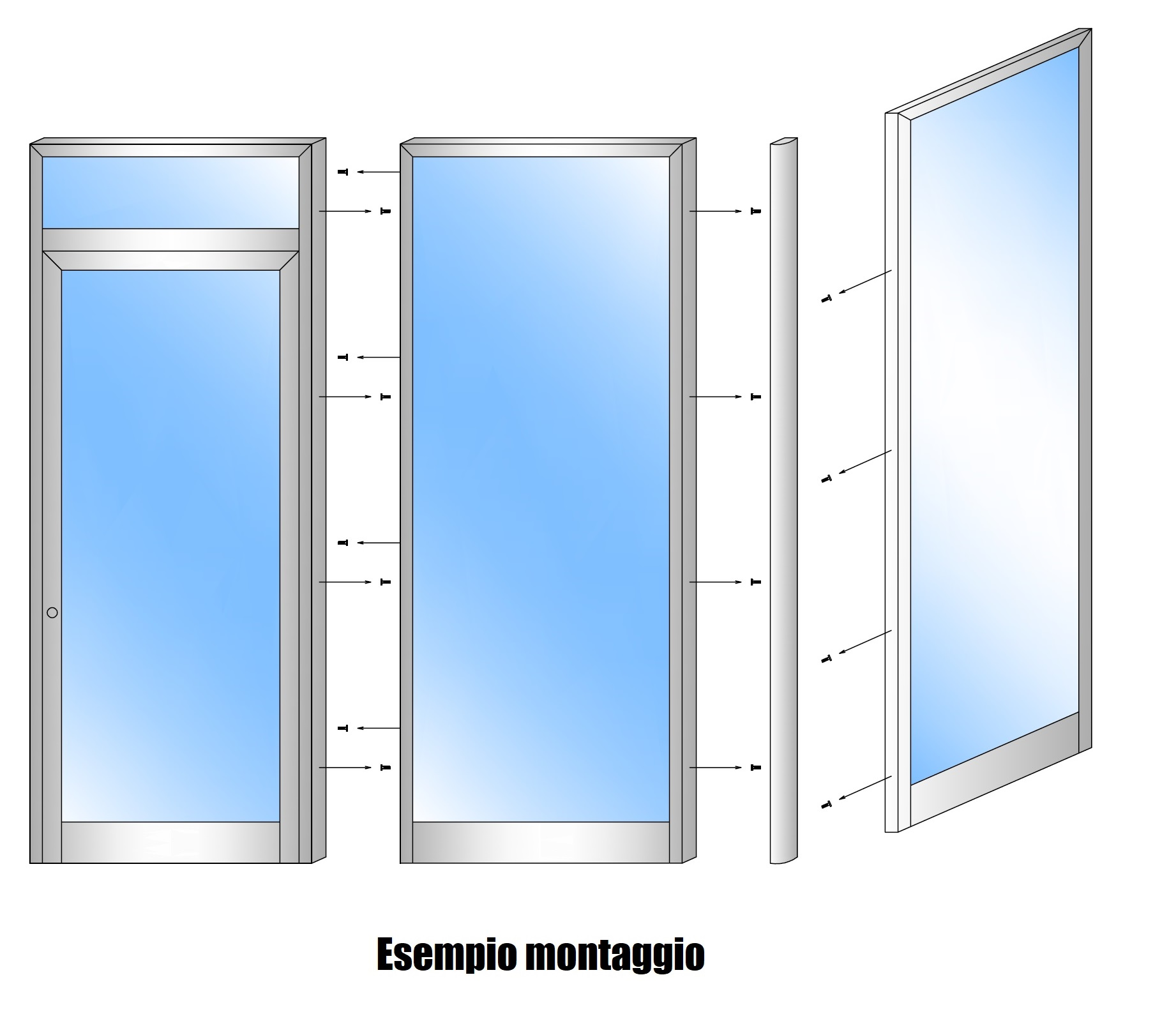 Modulo Parete Divisoria in Vetro Trasparente Alluminio - H2550xL1000 mm - ITALFROM®