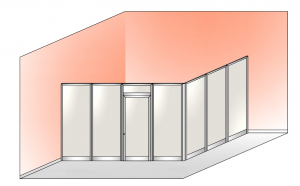 Box Modulare in Alluminio Composto da 6 Moduli in Vetro Opale e un Modulo Porta in Vetro Opale 4 x 3 m H2550 mm - ITALFROM® BOX01O