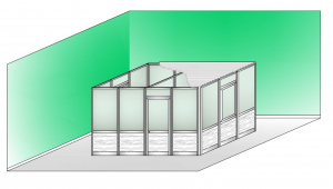 Box Modulare in Alluminio Composto da 11 Moduli in Vetro Satinato e Perline, due Moduli Finestra in Vetro Satinato e Perline, un Modulo Porta in Vetro Satinato e Perline e Copertura con Perline 4 x 3 m H2550 mm - ITALFROM® BOX06SP