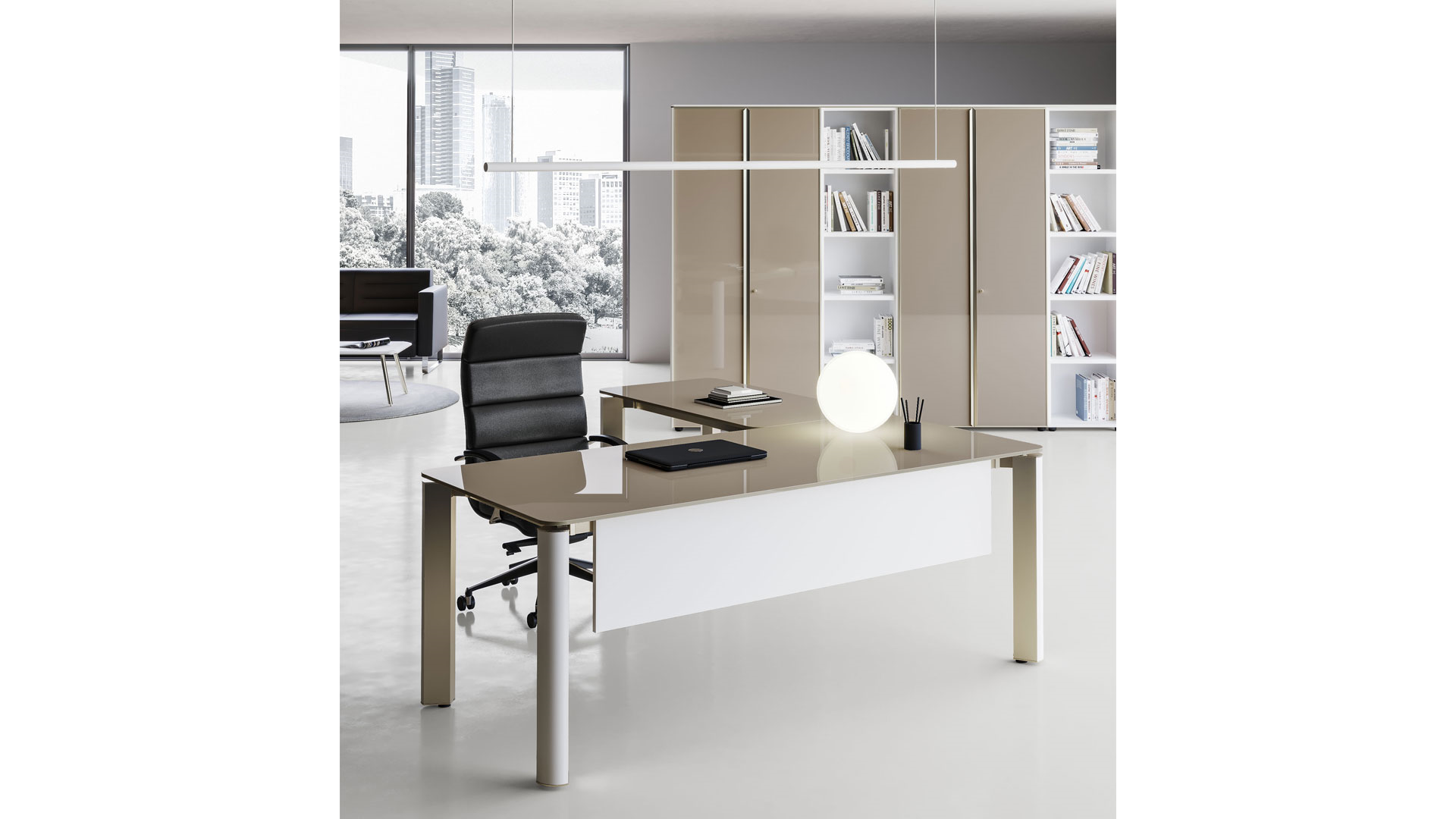 Caesar, il prodotto di Italfrom dalle forme morbide, organiche, dalle linee essenziali che comunicano leggerezza ed eleganza. Un programma completo di scrivanie, tavoli da riunione, da salotto, mobili contenitori ed armadi, per una ambiente direzionale raffinato e moderno.