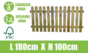 .Steccato in Legno con Doghe di Pino - Dimensioni: L 180cm x H 100cm