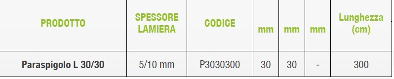 PARASPIGOLO IN ACCIAIO L30/30 - PROFILO PER CARTONGESSO - Lunghezza Barra 300 cm -