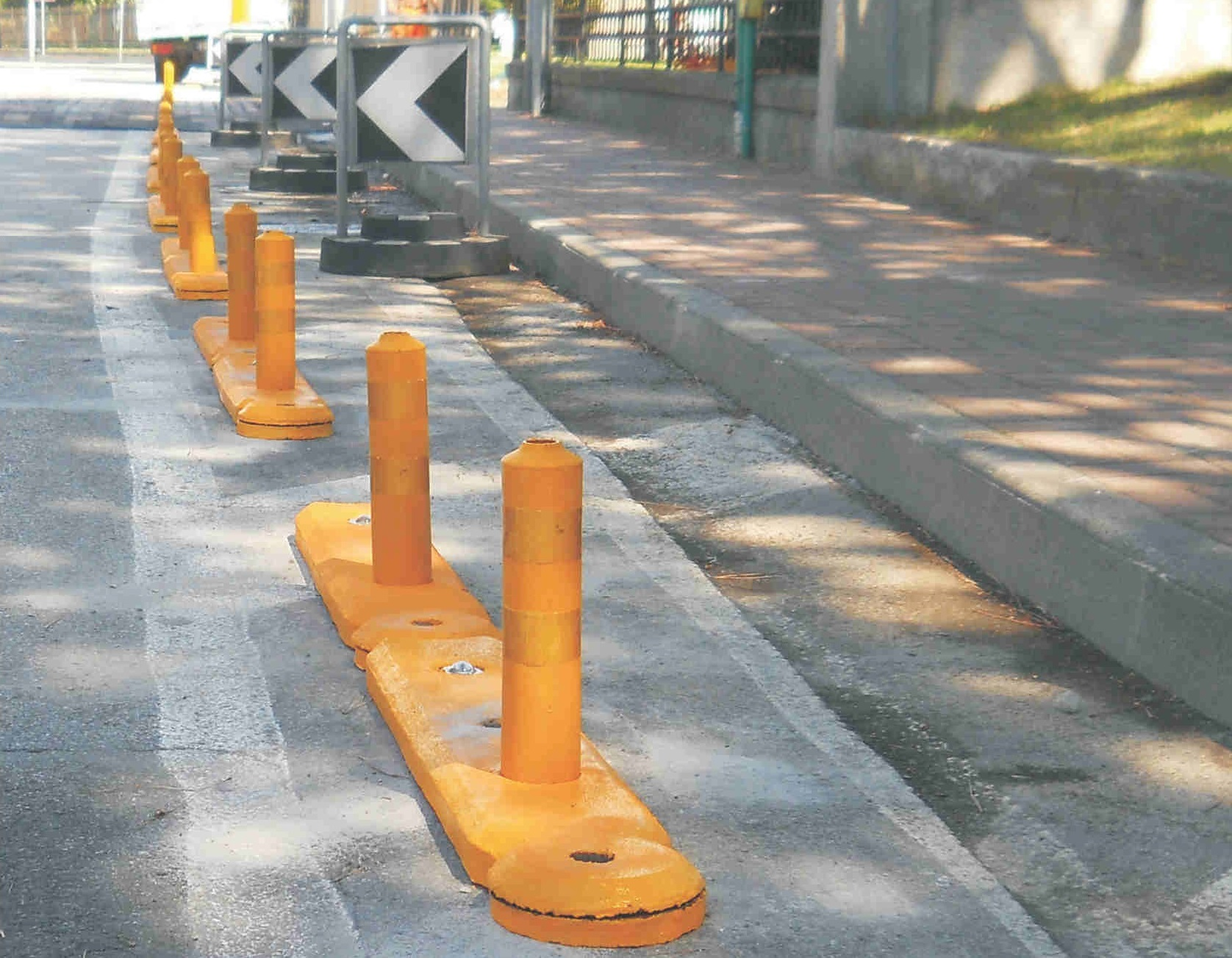 Cordolo Delimitatore di Corsia in Gomma Riciclata Gialla con Inserto Rifrangente Varie Altezze