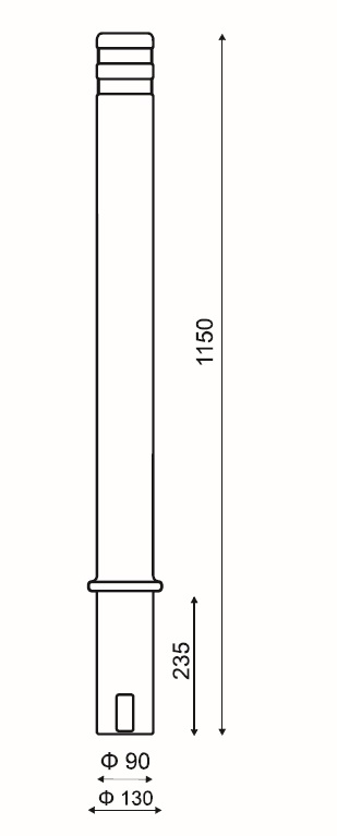 Dimensioni: diametro paletto 90 mm, altezza fuori terra 915mm, altezza complessiva 1150 mm.