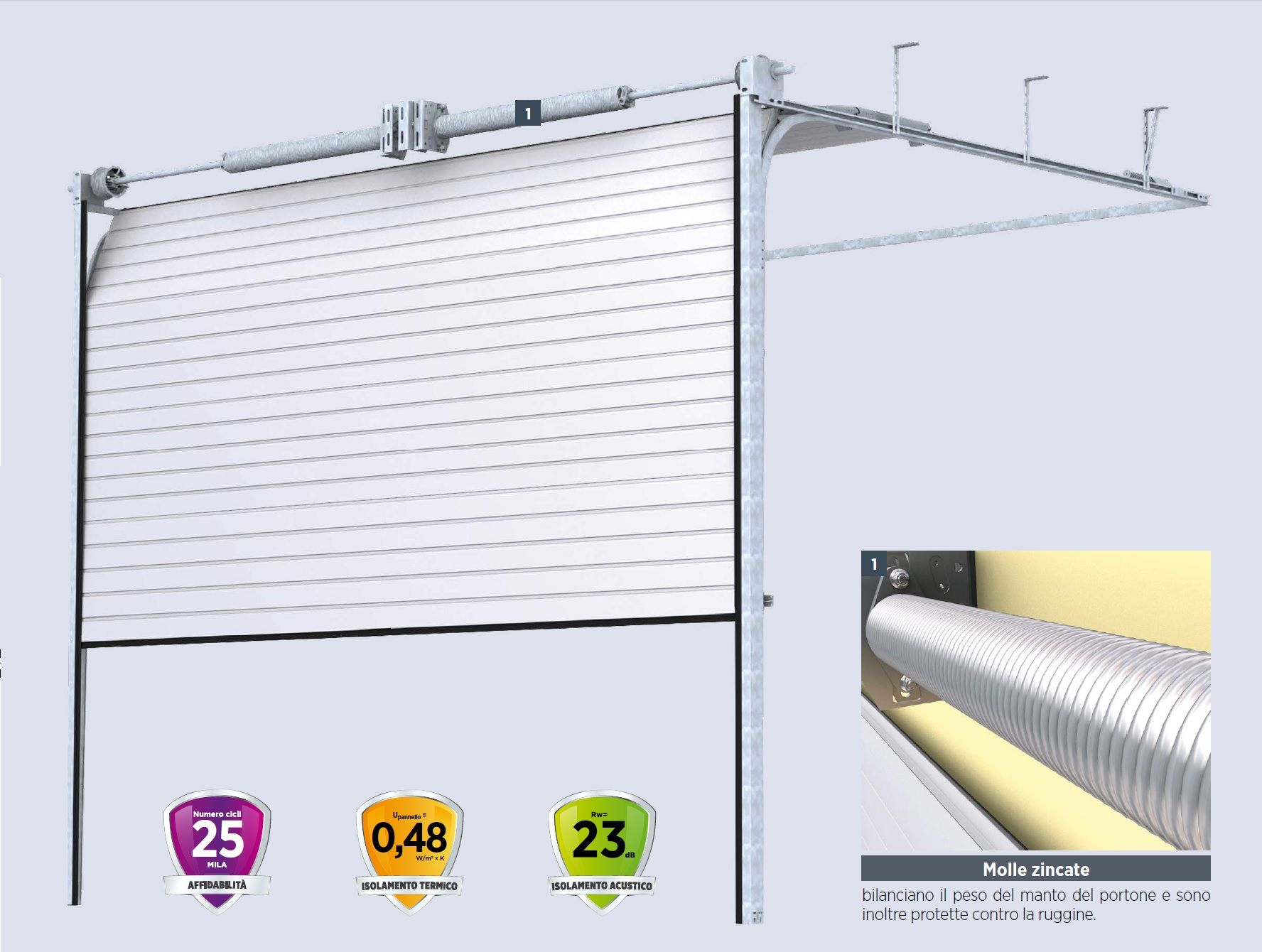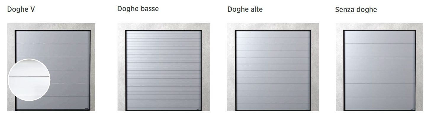 • Ogni portone ha un sistema di guarnizioni flessibili e resistenti lungo l'intero perimetro e tra i pannelli, che aumenta notevolmente l'isolamento del portone.