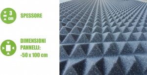 PANNELLO PIRAMIDALE FONOASSORBENTE IN PULIURETANO ESPANSO - 50x100xH3cm