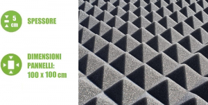 PANNELLO PIRAMIDALE FONOASSORBENTE IN PULIURETANO ESPANSO - 100x100xH5cm