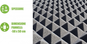 PANNELLO PIRAMIDALE FONOASSORBENTE IN PULIURETANO ESPANSO - 50x50xH3cm