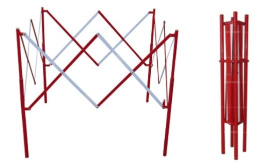 CARATTERISTICHE TECNICHE: ALTEZZA: CM 100 MATERIALE: ACCIAIO VERNICIATO CON VERNICE EPOSSIDICA ROSSO E BIANCO DIAMETRO DEL TUBO: 25 MM LUNGHEZZA PIEGATA: 15 X 15 CM LUNGHEZZA ESTESA: 125 X 125 CM