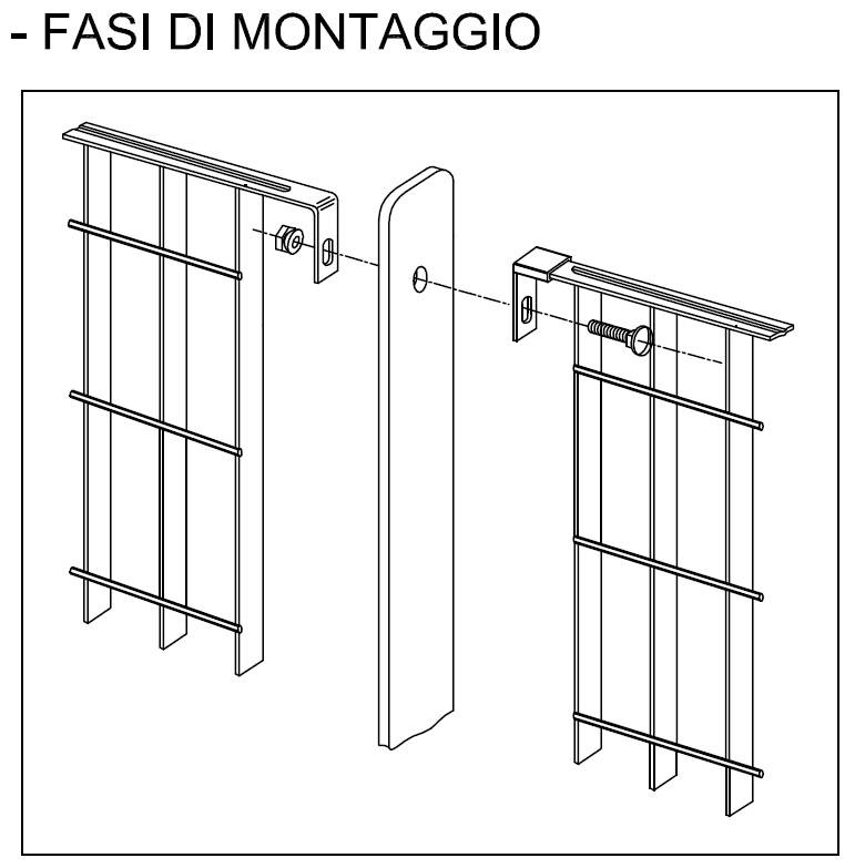 Tali fissaggi consentono, fornendo al cliente tutti i pannelli standard, la creazione in cantiere del pannello speciale. Si asporta la parte in eccesso al pannello standard e si inserisce il teminale da recinzione nella sporgenza del piatto di bordatura.