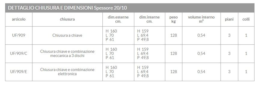 Per tutti i modelli il sistema può essere integrato da combinazione numerica a 3 dischi coassiali formante un milione di combinazioni,oppure da combinazione elettronica.