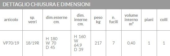 - Allestimento interno con 1 piano e rastrelliera in legno per fucili