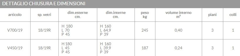 Gli sportelli sono scatolati con cerniere interne e bordo antistrappo apribili a 180°. Serratura con cilindro di sicurezza a profilo europeo. Chiave a duplicazione protetta,riproducibile con carta di proprietà.