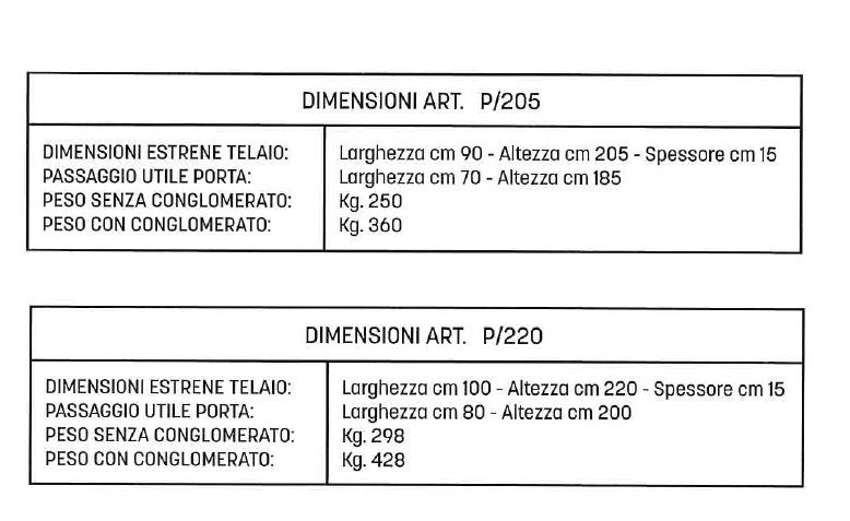 Le porte corazzate per camere di sicurezza vengono realizzate in lamiera di acciaio M.S. e sosno costruite con doppie pareti unite fra loro con appositi rinforzi di collegamento ed internamente conglomerato cementizio ad altissima resistenza.