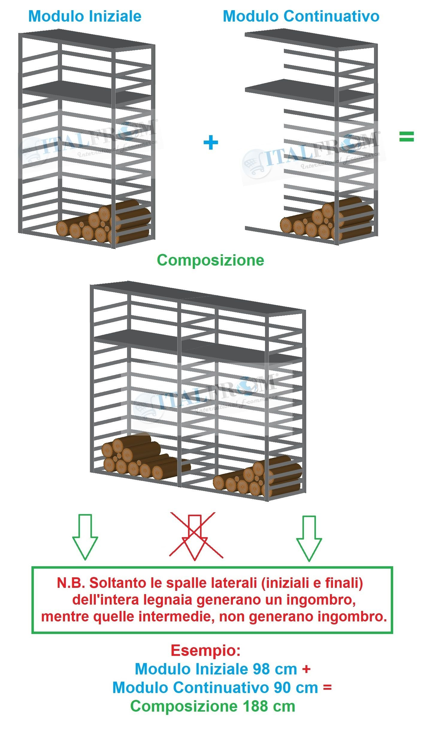 Legnaia Modulare ITALFROM® in Acciaio Zincato Autoportante - Modulo Continuativo - Varie Misure a Scelta