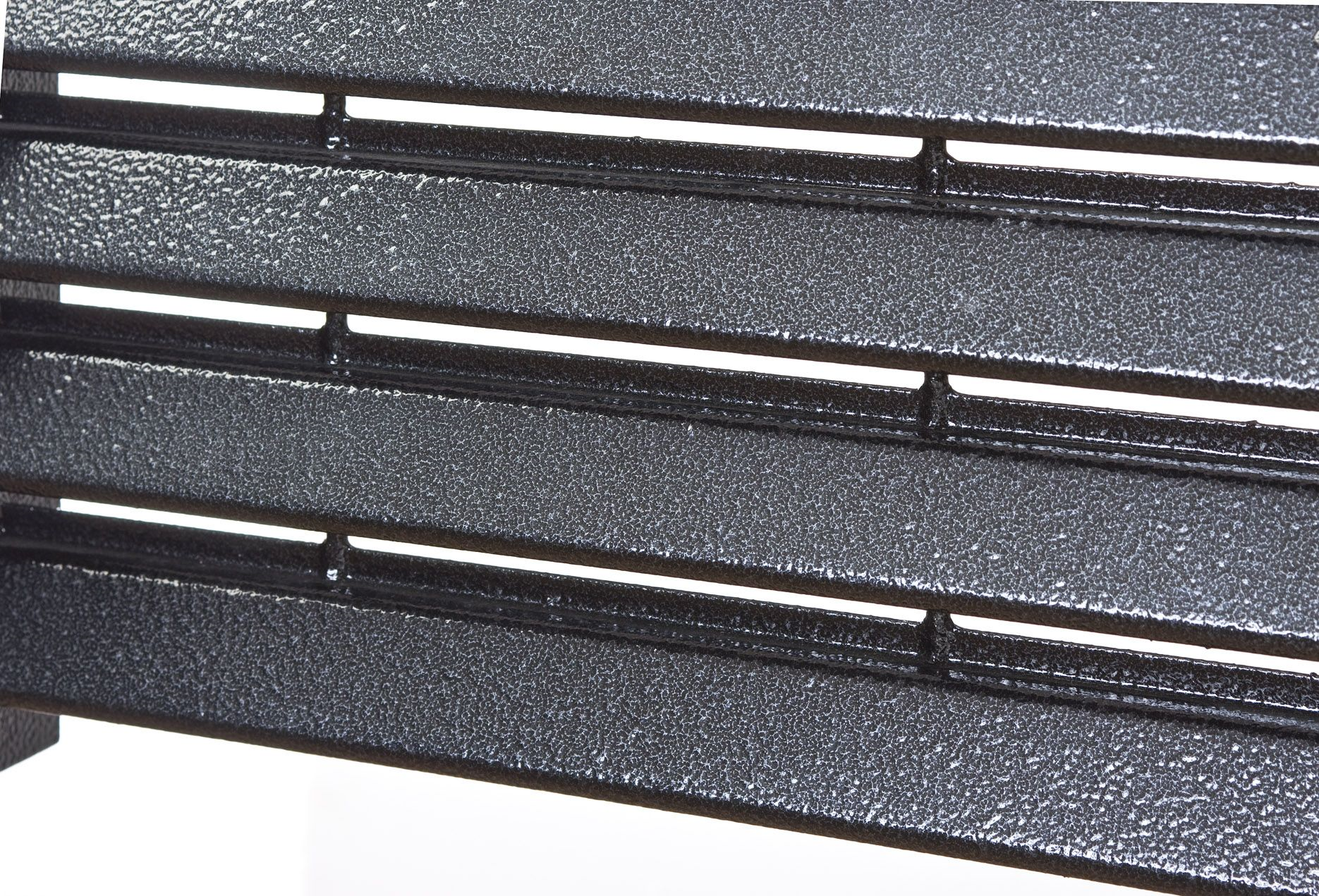 N.B. Le piantane sono da acquistare a parte. Per i colori fuori standard c'è un aumento del 30%La recinzione in grigliato elettrosaldato modello ORIZZONTALE è costituita con profili orizzontali a Z da 50x1,6 mm posti ad un interasse di 46 mm. I collegamenti sono costituiti in tondo Ø 4 mm, aventi interasse di 132 mm. Le bordature orizzontali e verticali sono realizzate in piatto da 50x3 mm.