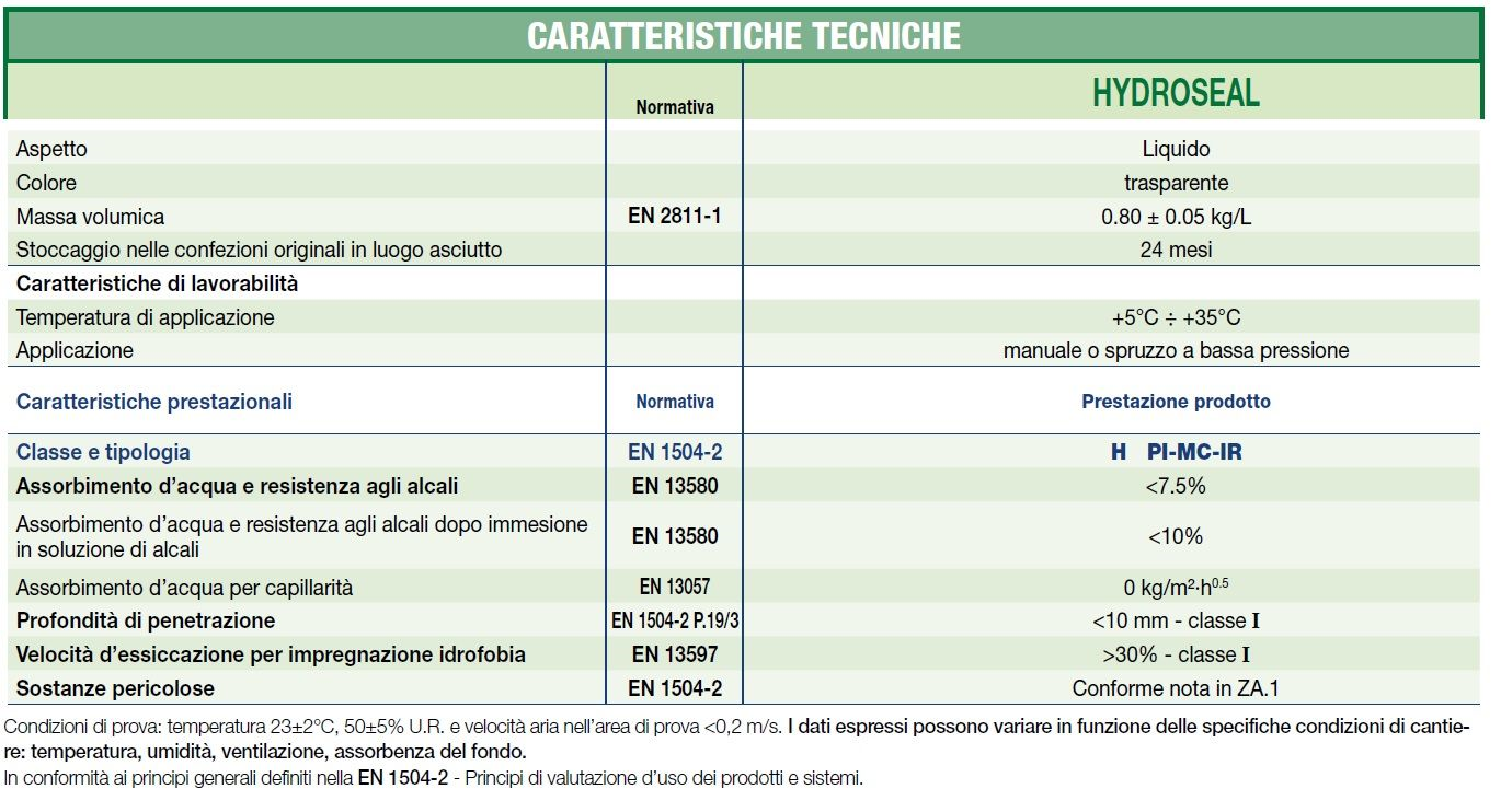 Si consiglia innanzitutto la pulizia con un pulitore acido. Dopo aver risciacquato le superfici con acqua, sigillare eventuali fessurazioni e stuccare le fughe fra piastrelle con boiaccatura dove fosse necessario. Piastrelle, cornici, soglie staccate vanno preventivamente fissate con apposito collante. Le superfici piastrellate devono essere pulite, asciutte e perfettamente sgrassate da olii, cere e paraffine. La stesura di HYDROSEAL può essere eseguita in due modi: con pennello o irroratori a bassa pressione, in una sola mano, insistendo particolarmente nelle fughe e nelle zone più assorbenti in modo da permettere alla soluzione impermeabilizzante di impregnare ogni porosità. Il prodotto in eccesso e non assorbito va eliminato dopo max 30 minuti dalla sua applicazione per mezzo di un tampone imbevuto con benzina o con uno straccio pulito. Il tempo di essiccazione varia con la temperatura e la porosità del supporto, generalmente è di 1 ora. Il terrazzo risulta impermeabile dopo 24 ore, ma solo dopo una settimana l’essiccazione del prodotto è completa.