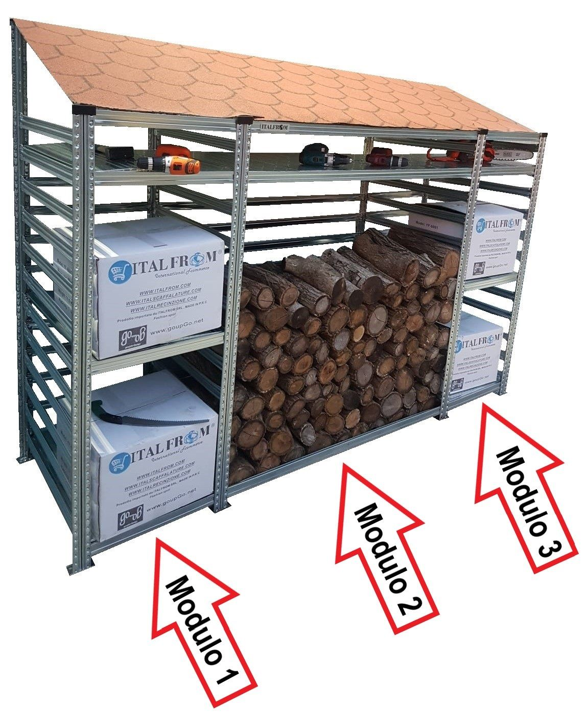 Legnaia Modulare ITALFROM® in Acciaio Zincato Autoportante - Modulo Continuativo - Varie Misure a Scelta