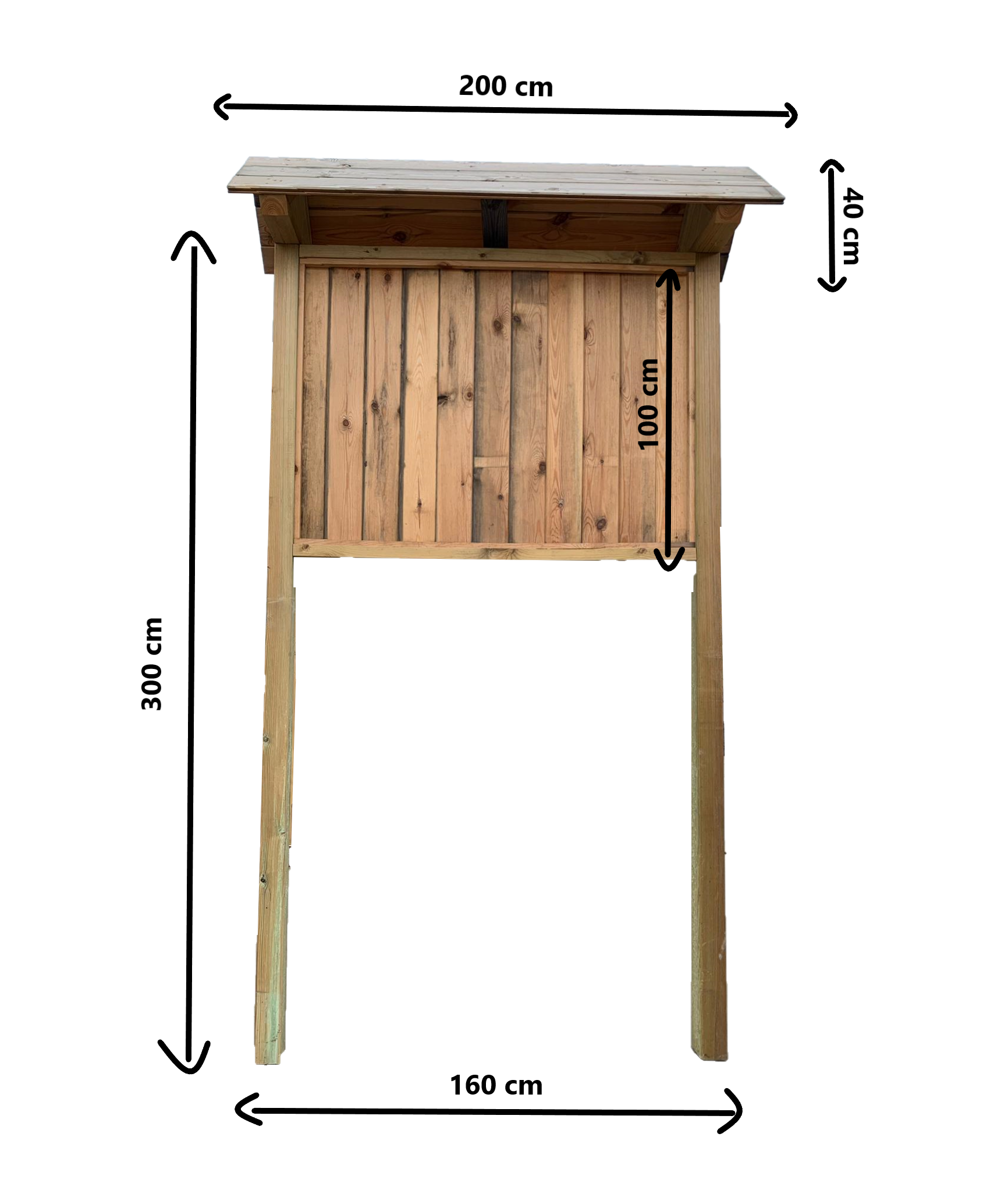 Bacheca realizzata con elementi in legno di pino silvestre impregnato in autoclave. Il tetto è prodotto con perline di spessore 21 mm. Sul tetto è possibile realizzare la copertura in guaina bituminosa o tegole canadesi.