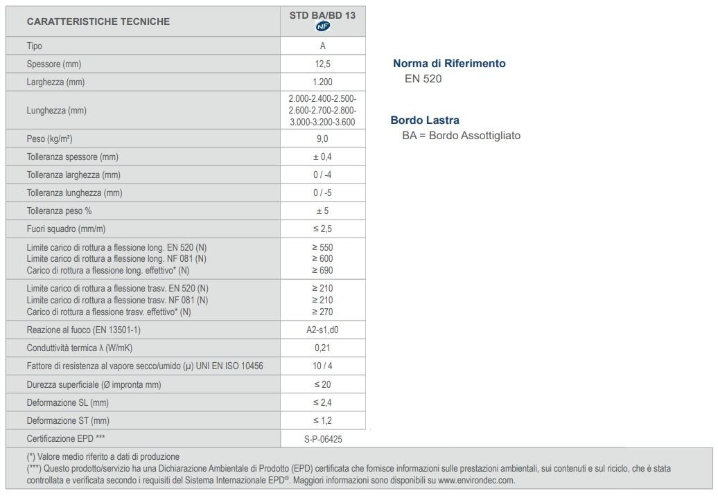 Le lastre Gypsotech STD, prodotte secondo la normativa EN 520, sono in classe europea di reazione al fuoco A2, s1 - d0.