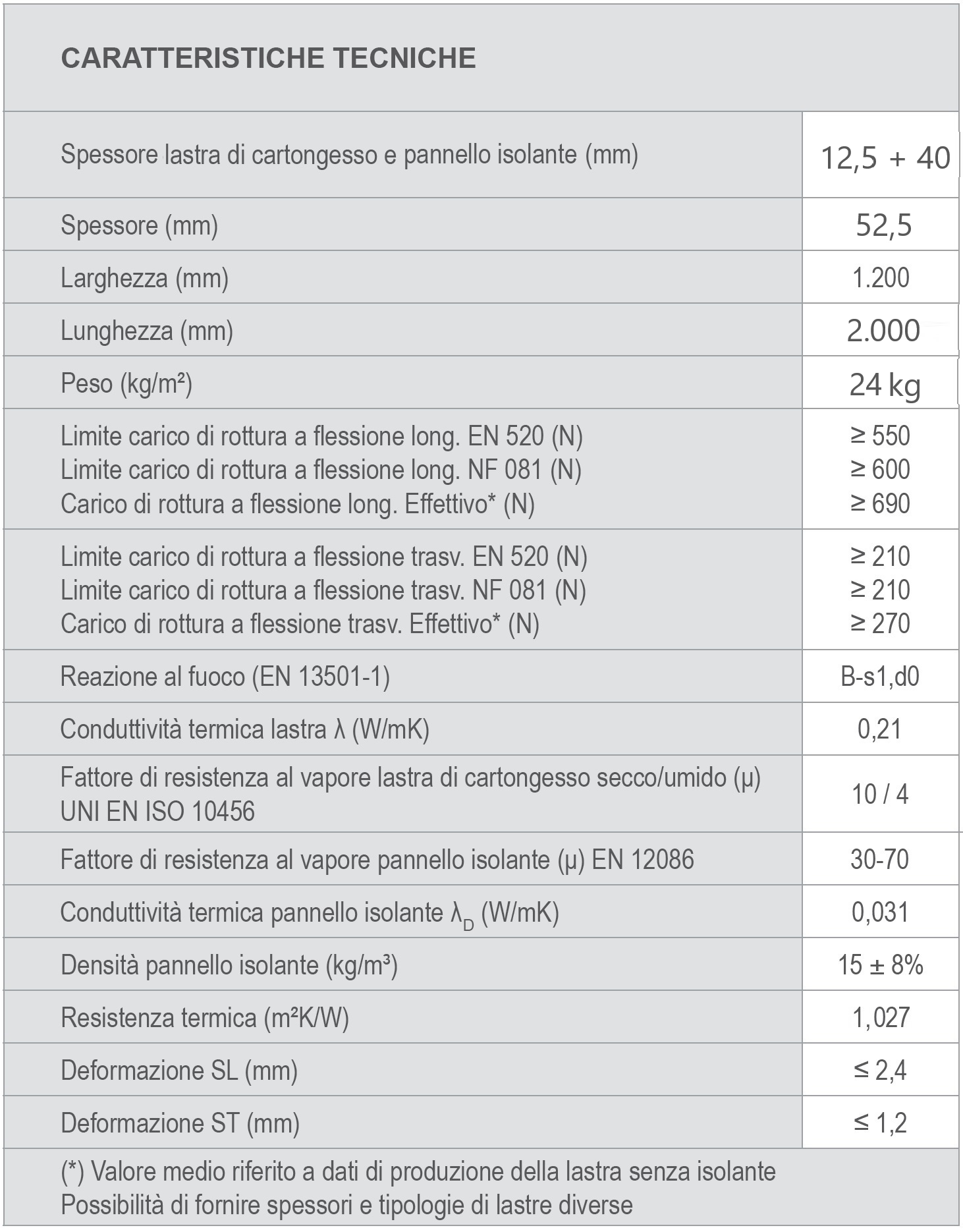 La lastra accoppiata per isolamento termico costituita da uno strato di gesso incorporato fra due fogli di cartone speciale ad alta resistenza e da un pannello di polistirene espanso sinterizzato, additivato con grafite.