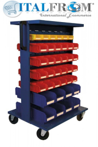 L’aspetto antinfortunistico di questi carrelli ha caratterizzato la loro progettazione. Robusti e pratici, sono realizzati in lamiera elettrosaldata, verniciati con resina epossidica, dotati di quattro ruote gommate 2 fisse, 1 piroettante e 1 piroettante con freno. I carrelli della Linea Carry Box vengono forniti smontati con schema di montaggio e viteria per l’assemblaggio.