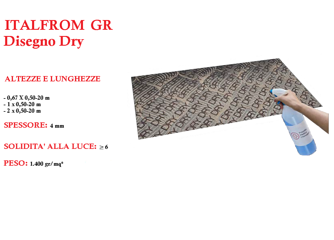 Con il sistema Dry, avrai sempre le suola delle scarpe sanificate. Ideale per uffici, case, negozi e ogni ambiente che necessiti di una sanificazione al suo ingresso. Questi tappeti sono eleganti e di design adatti sia per interno che per esterno. La lavorazione jacquard rende i suoi disegni resistenti al calpestio. Aderisce perfettamente al suolo e consente l’apertura delle porte. Lavabile con un comune detersivo.