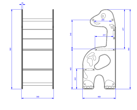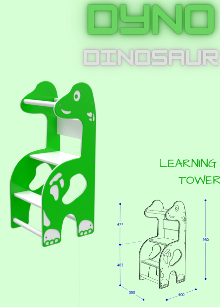 Dimensioni : 390 x 400 x H960 mm - fornita smontata Learning tower a tema dinosauro, realizzato in polietilene sp.15mm