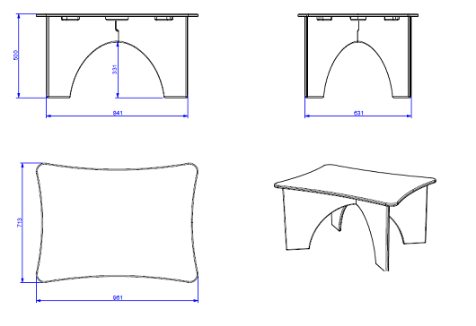 Dimensioni : L 961 x P 713 x H 500mm - smontata Tavolino realizzato in polietilene sp.19mm
