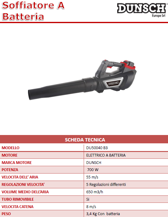 Soffiatore a Batteria Dunsch 700W con Batteria e Caricabatteria