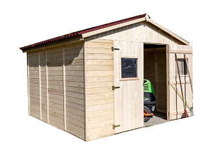 Pareti : Pannelli preassemblati di tavole piallate con scanalatura e linguetta in abete spessore 16 mm fissati su sezione telaio 25x25 mm