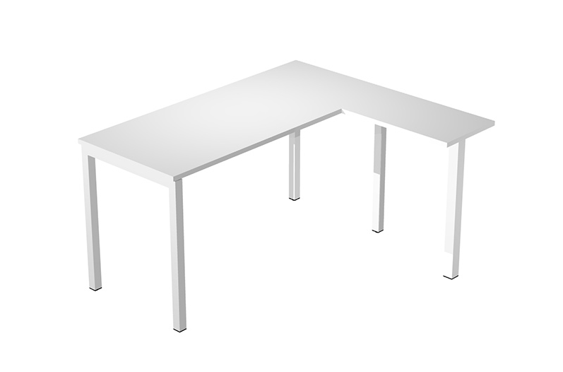 Piani scrivania sp. 22 mm, con allungamento ad angolo in melaminico antibatterico , antigraffio, antiriflesso. Bordo dei piani scrivania e ritorno in abs in spessore.
