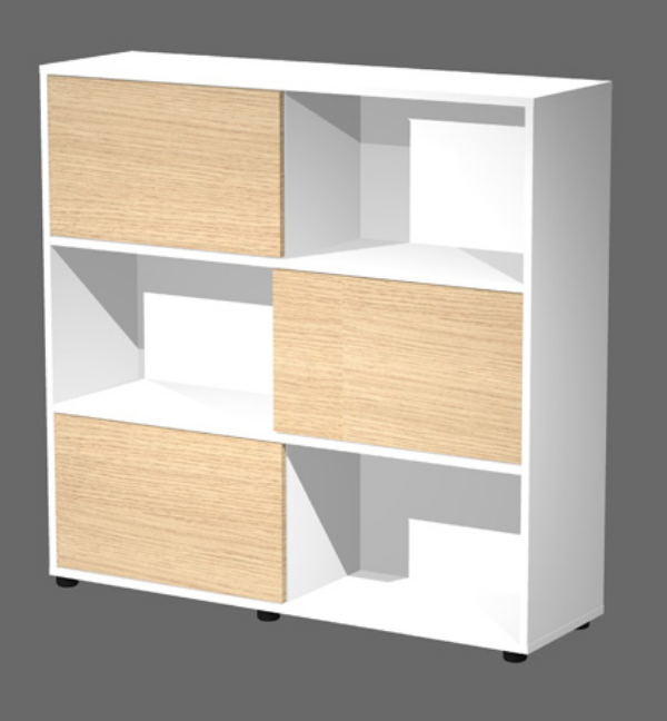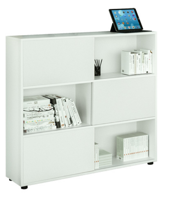 Libreria a 3 ante (17065). Ante scorrevoli opzionali in più finiture. Libreria finitura bianco cera. Piedini regolabili. Imballo tutto in cartone, facilmente riciclabile. Sistema qualità certificato ISO 9001.
