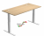 Scrivania fornita di gambe in metallo con movimento per la regolazione dell'altezza motorizzato. Piano in pannello nobilitato melaminico in spessore 25 mm con bordo antiurto in spessore 2 mm.