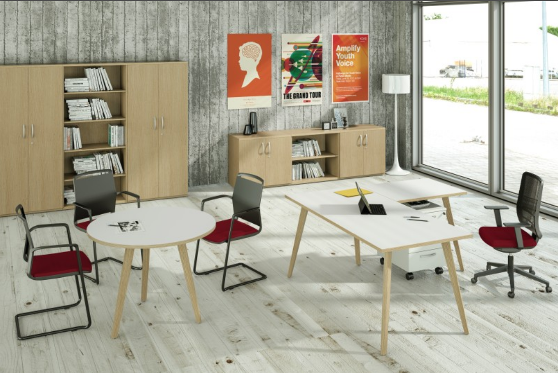 Possibilità di formare bench a 2 postazioni di lavoro. Piani in truciolare nobilitato melaminico, finitura antigraffio e antiriflesso, in classe E1. Bordature dei piani con abs in spessore sempre in rovere chiaro, con assenza di spigoli vivi. Imballo a tutela dell' ambiente, totalmente in cartone per un completo riciclo .